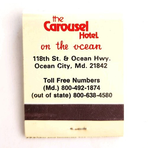 Carousel Hotel Vintage Matchbook Ocean City Maryland Matches Struck E19H