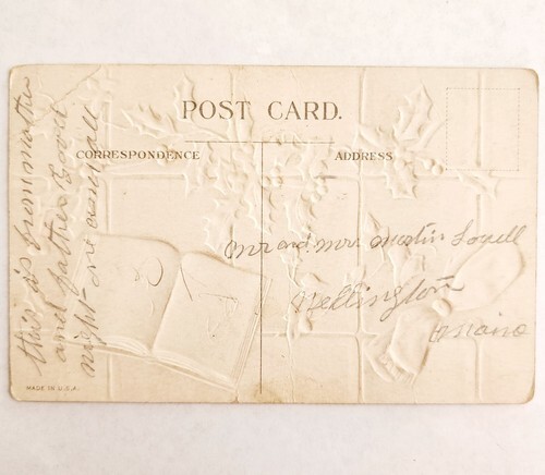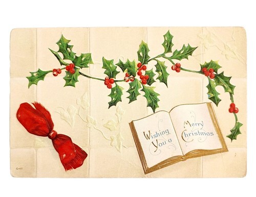 1900s Greeting Card Postcard Merry Christmas Holly Embossed Ephemera E83B