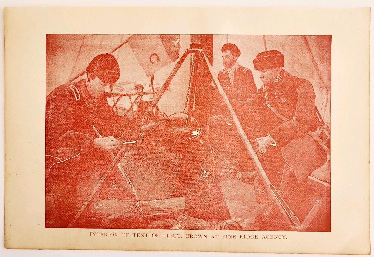 1891 Lieutenant Brown Tent Red Plate Print Victorian Indian Wars History F6H