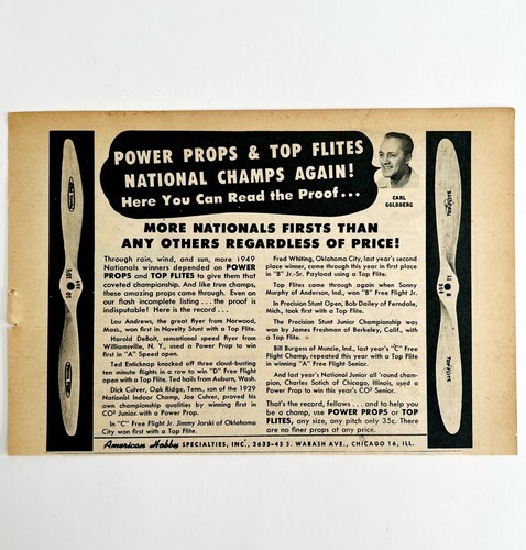 1949 Aviation Propeller Model Airplane Advertisement American Hobby Inc
