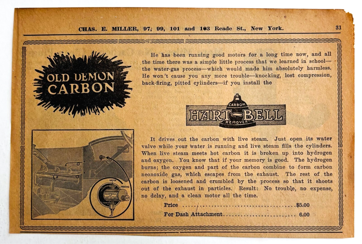 1917 Hart Bell Old Demon Carbon Advertisement Chas Miller Automobilia F14A
