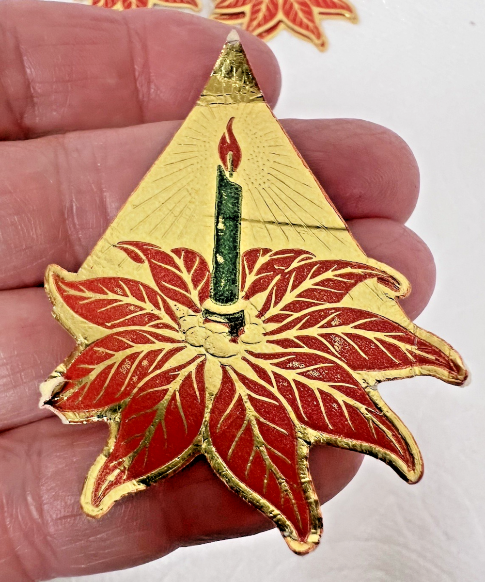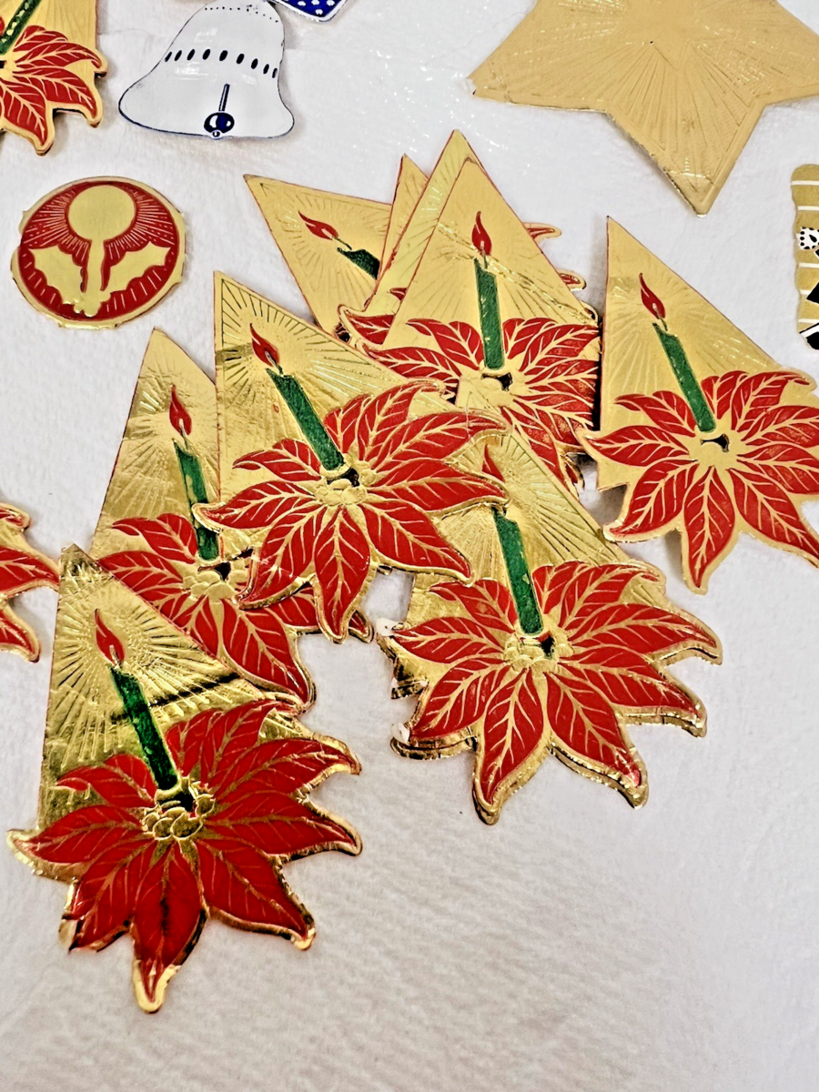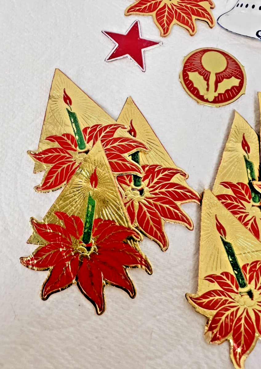 20 Vintage Christmas Gummed Seals Foils Poinsettia Candles More Wear to Tips