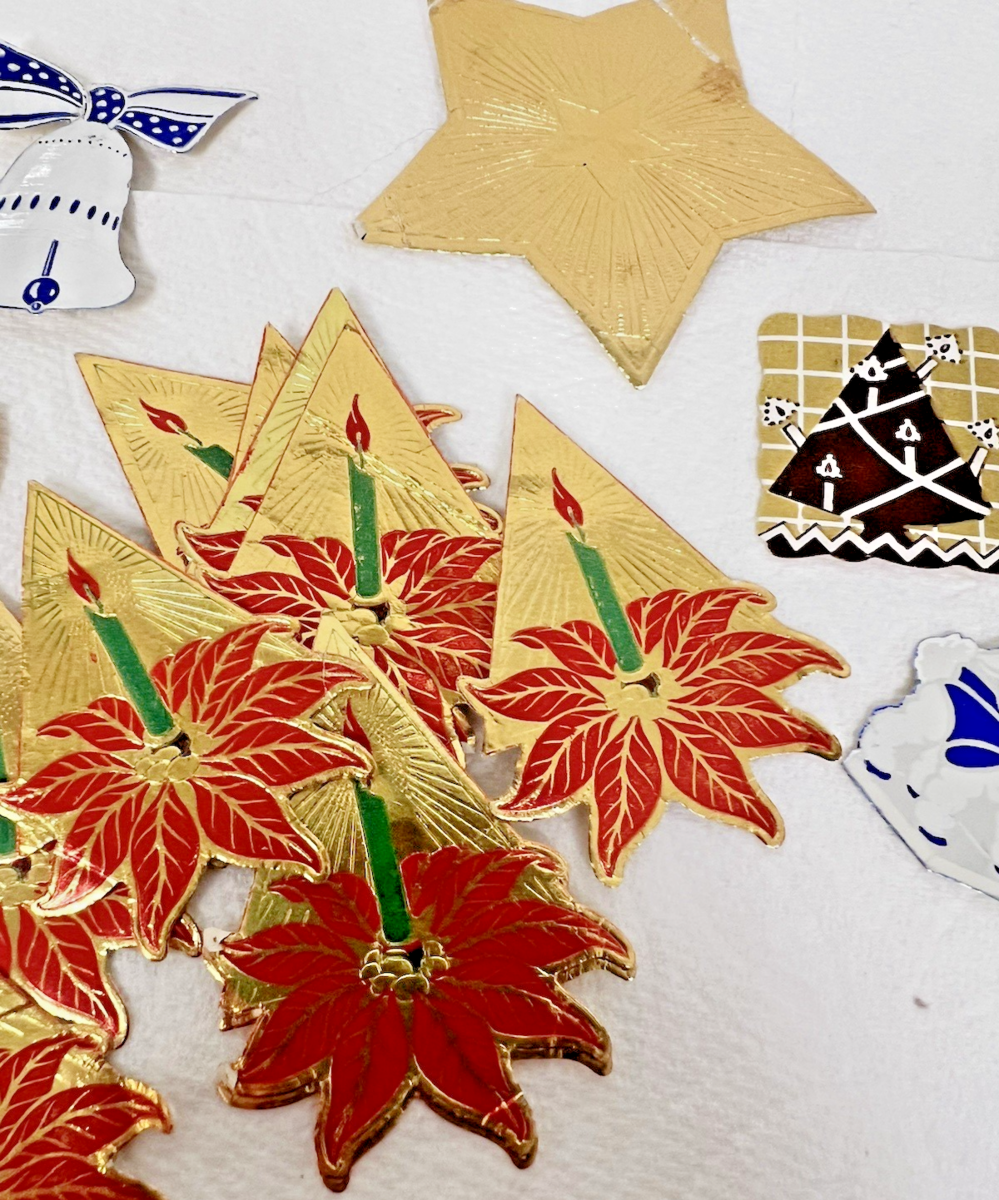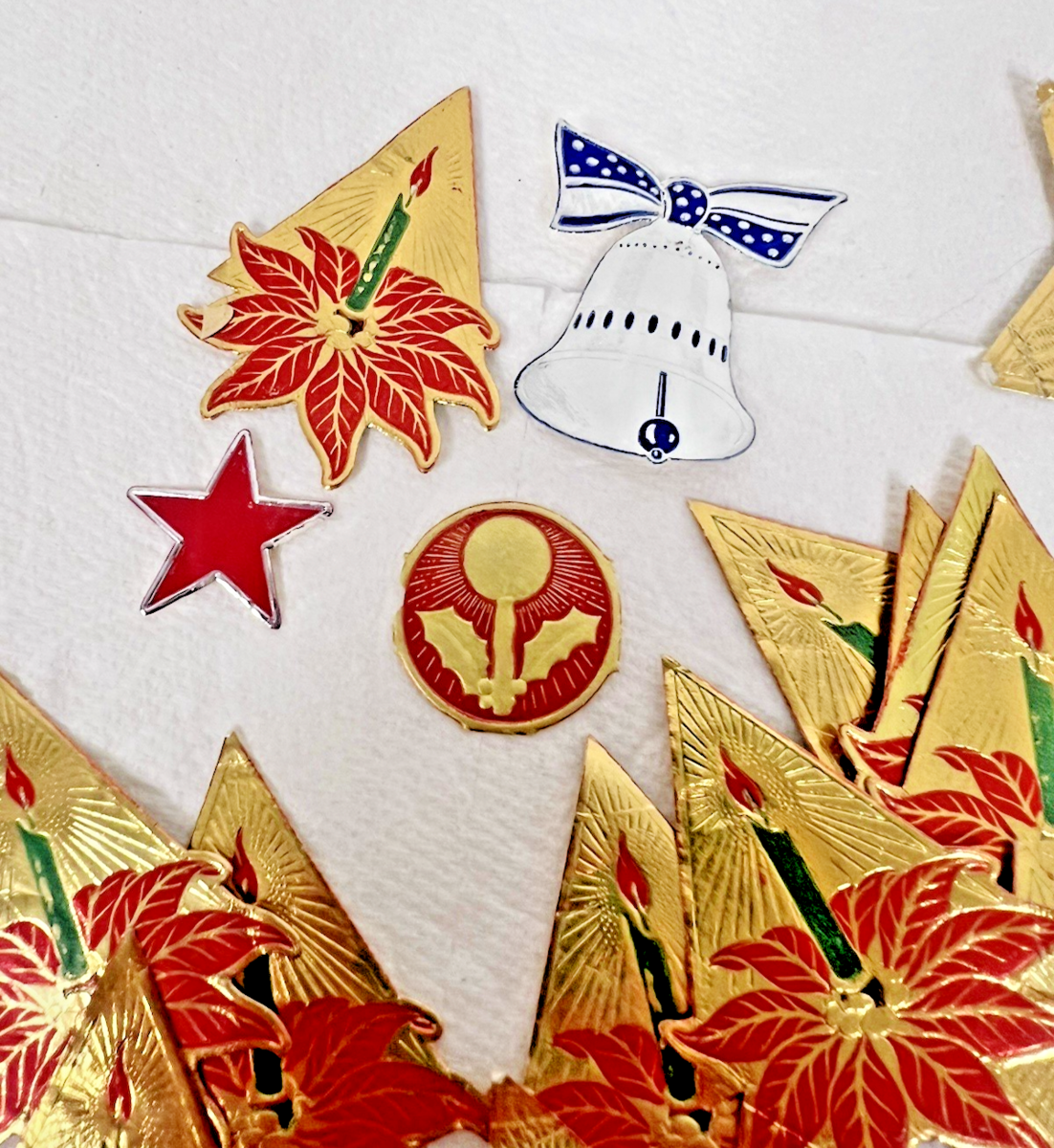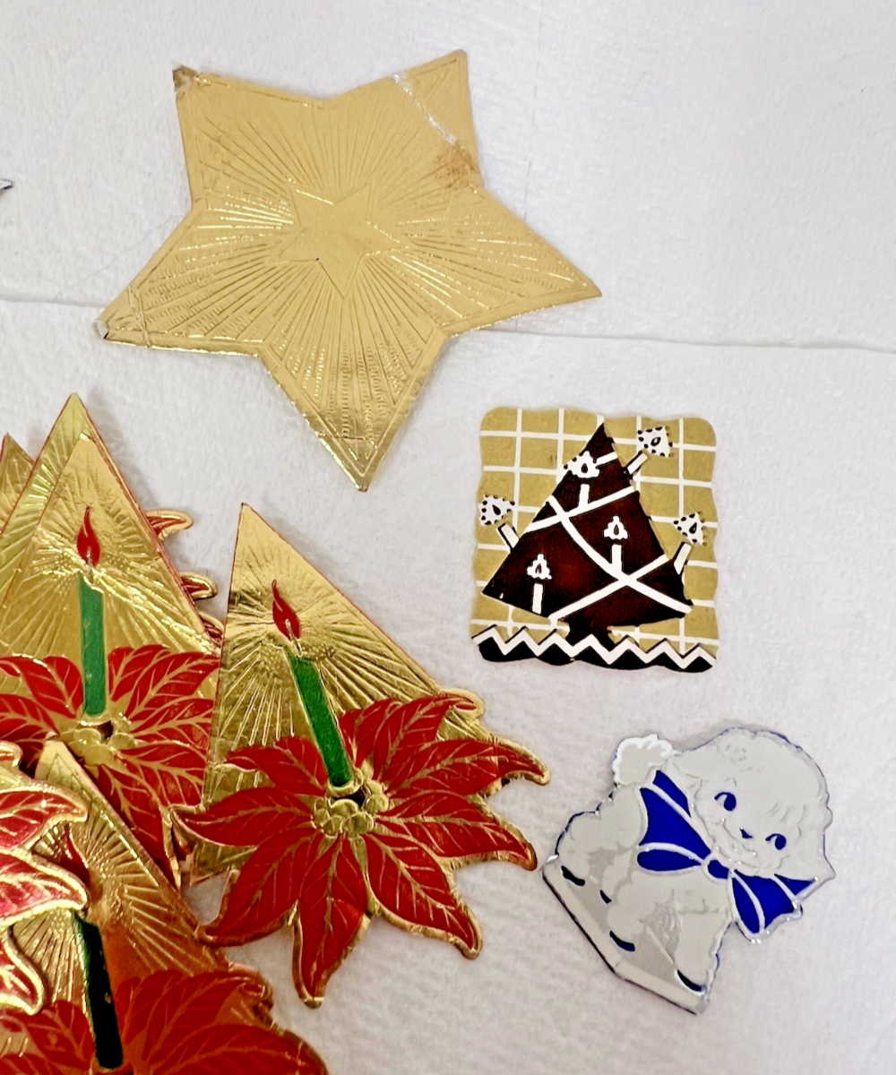 20 Vintage Christmas Gummed Seals Foils Poinsettia Candles More Wear to Tips