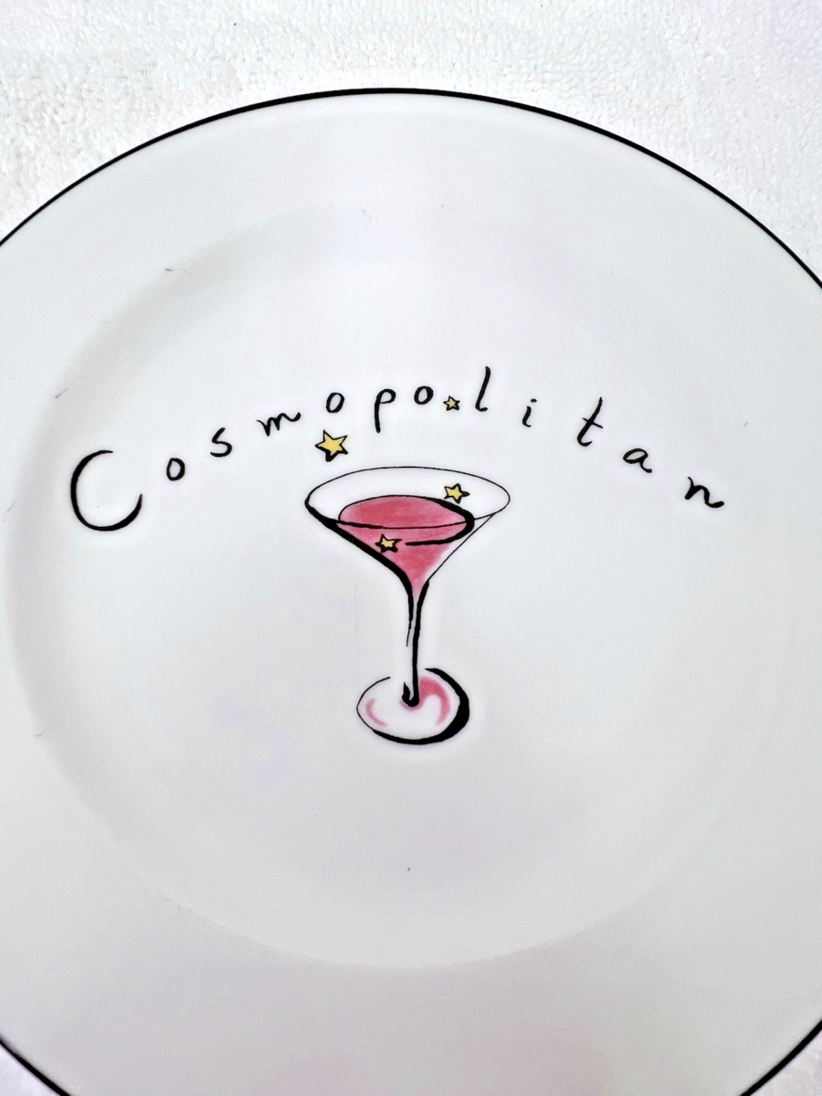 Pottery Barn Martini Cosmopolitan Cocktail Appetizer Dessert Tapas Plate 7 5/8" there are a few very tiny dark faint lines under the glaze This looks unused it's in wonderful shape