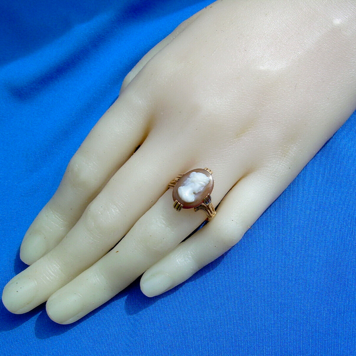 ANTIQUE 14K ROSE GOLD HARD STONE CAMEO STATEMENT RING.