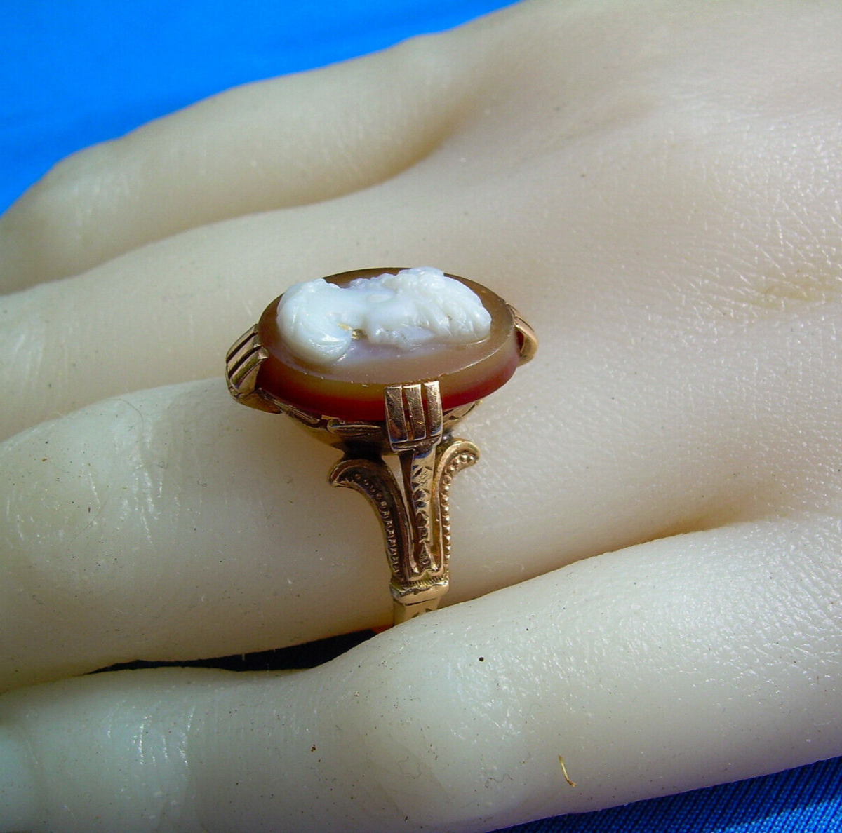 Antique Victorian Deco Ring Fine Intaglio Carnelion Cameo Solid 14k Rose Gold