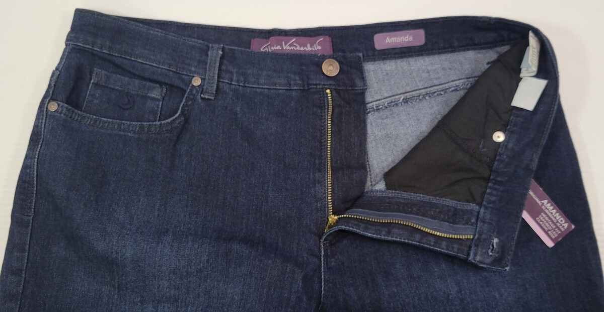 L32) Women's Gloria Vanderbilt Amanda Blue Slimming Jeans Pants Size 16 Short