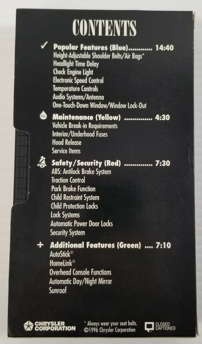 M) 1997 Mopar Chrysler LHS Dodge Intrepid Eagle Vision Operating Tips VHS Tape