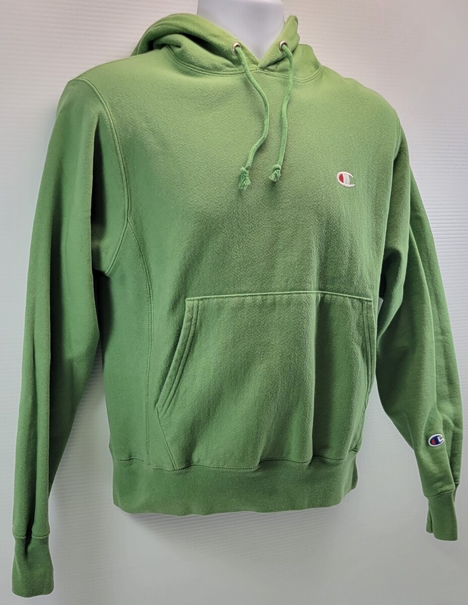 L2) Champion Men Reverse Weave Green Hoodie Kangaroo Sweatshirt Small