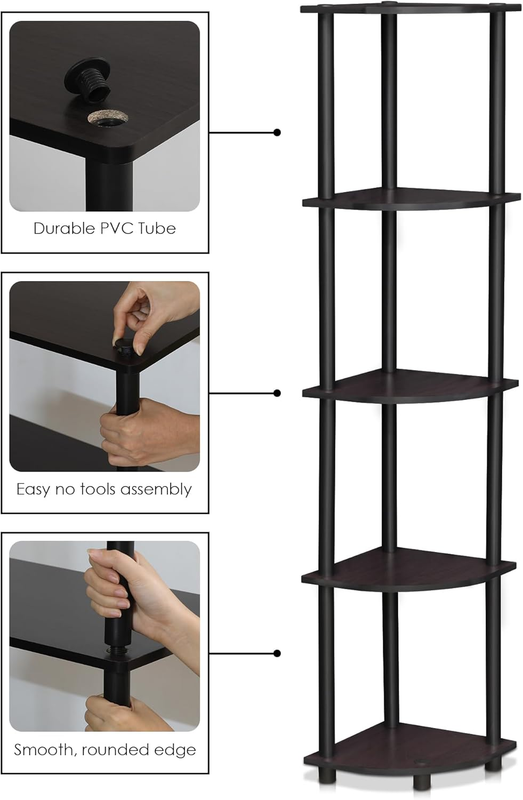 TURN-N-TUBE Corner Shelf, 5-Tier Corner Bookshelf, Open Storage Shelves, for Org