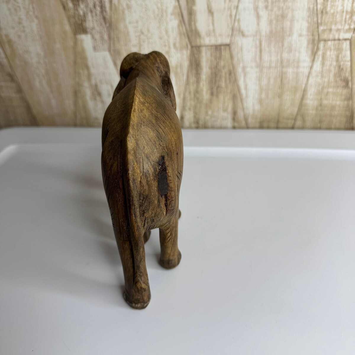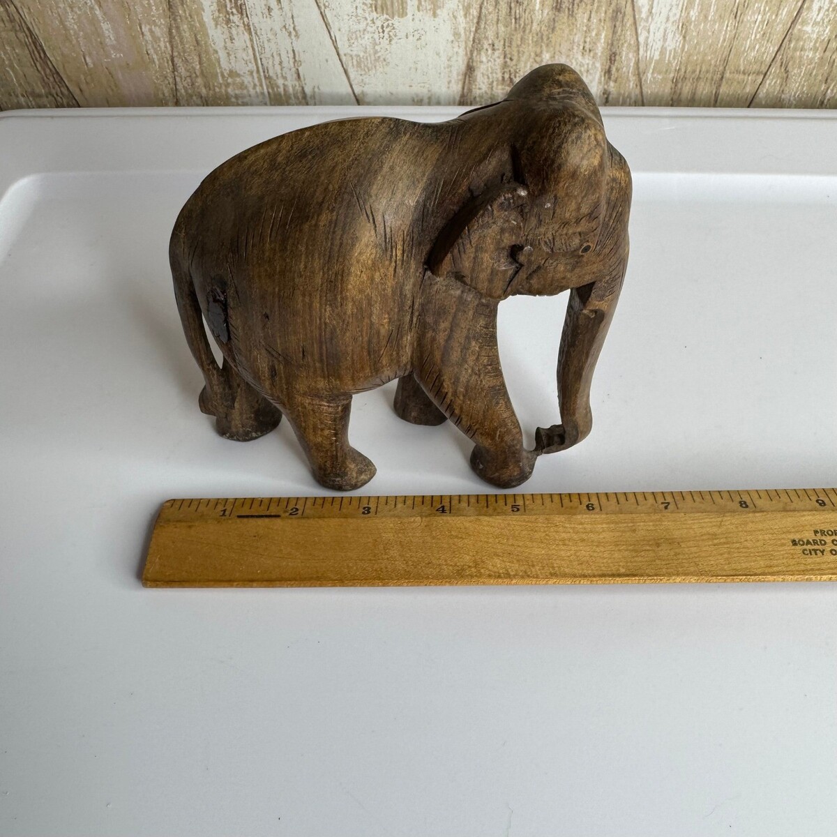 Vintage Wooden Elephant Figurine Hand Carved Rustic Home Decor