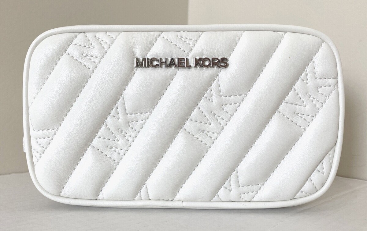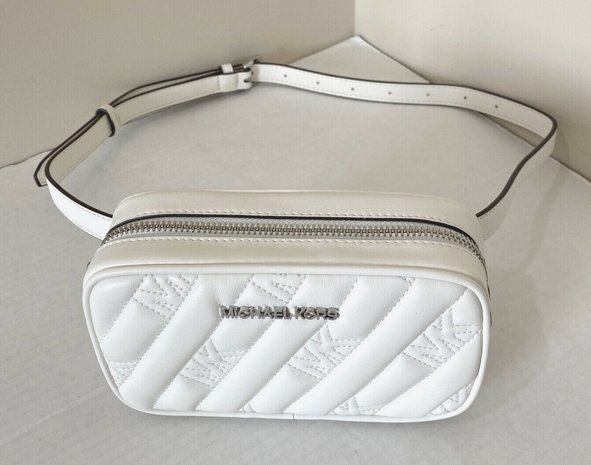 New Michael Kors Rose Belt Bag Quilted Vegan Leather Optic White with Gift Box