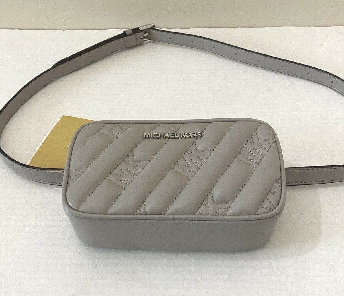 New Michael Kors Rose Belt Bag Quilted Vegan Leather Pearl Grey with Gift Box