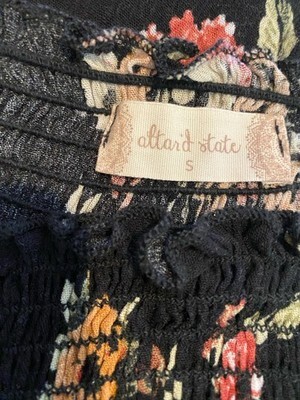 Altar'd State Black Floral Long Sleeve Maxi Crinkle Dress Size S