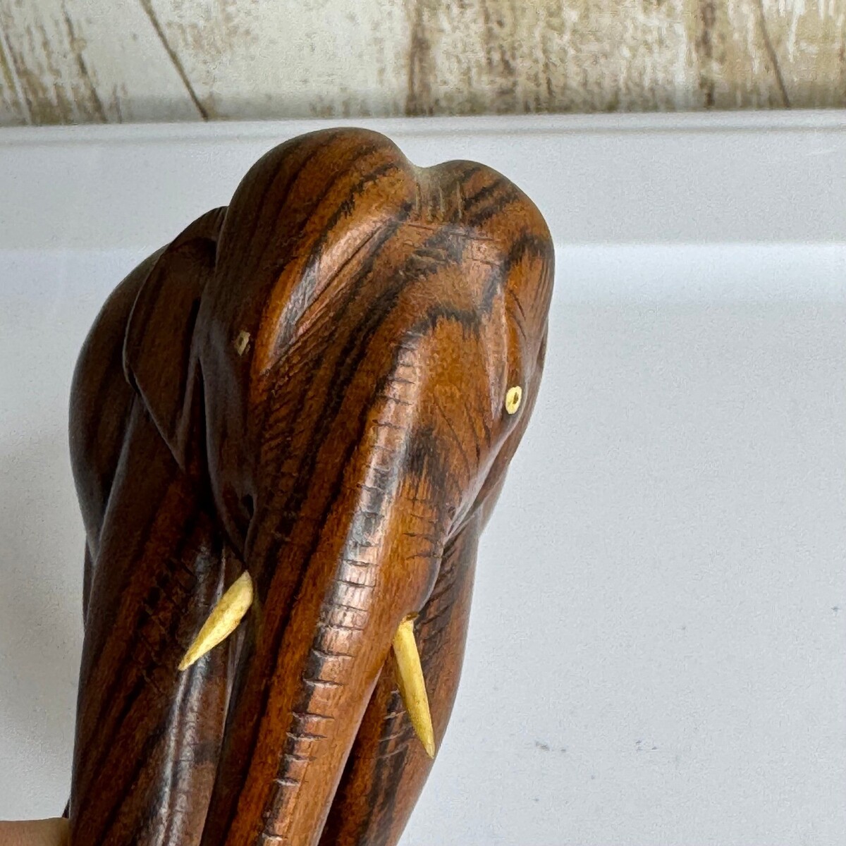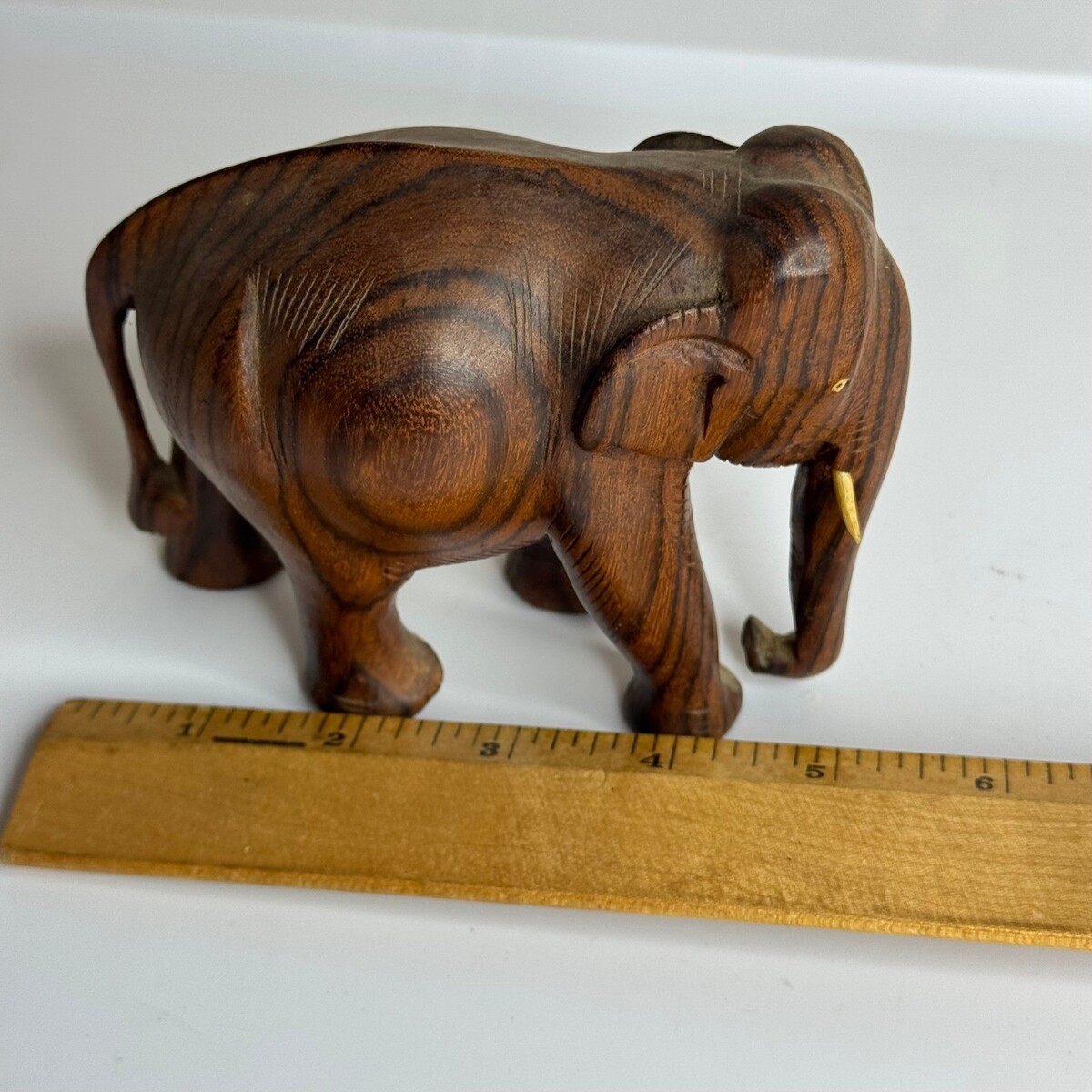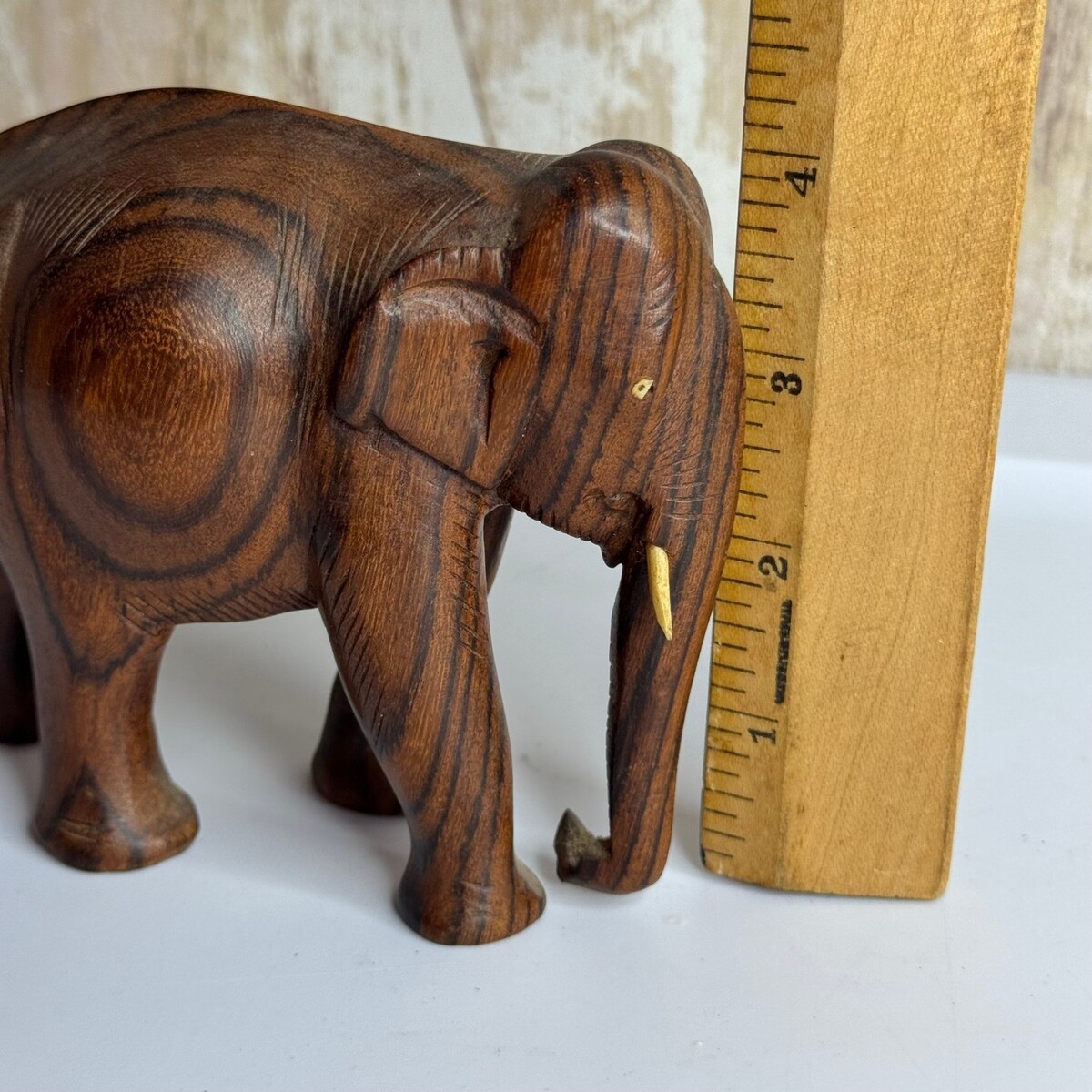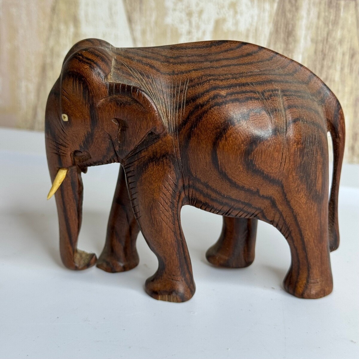 Vintage Wooden Elephant Figurine Hand Carved Animal Sculpture Home Decor