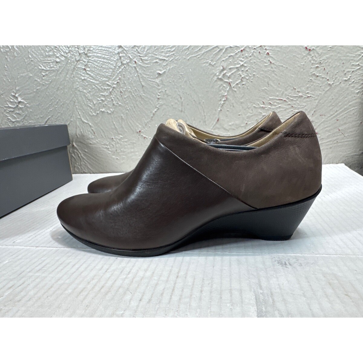 ECCO Sculptured 45 W Dark Brown Leather Zip Ankle Booties Women US 8-8.5 EU 39
