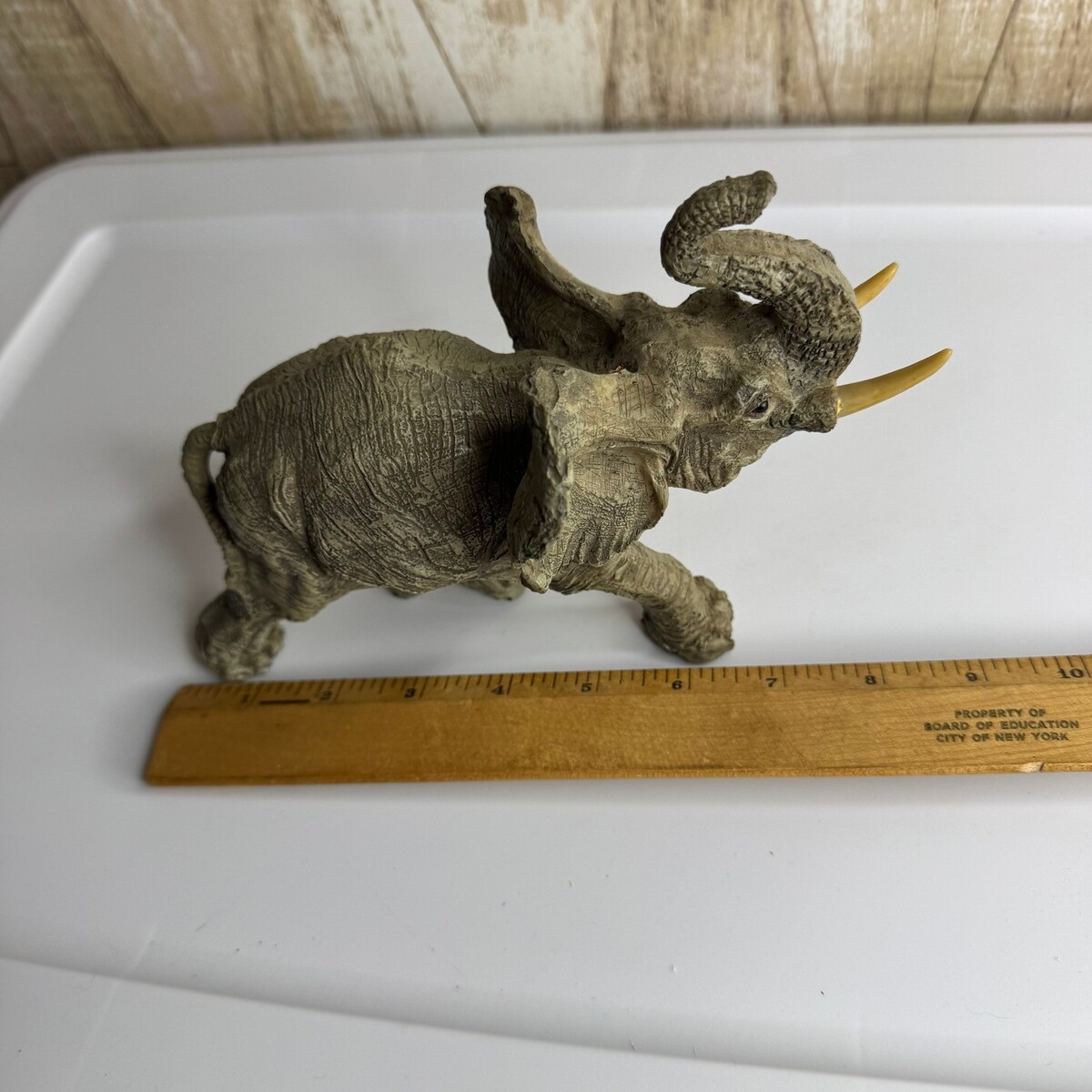 Vintage Textured Elephant Figurine Statue Realistic Gray Tusk Home Decor