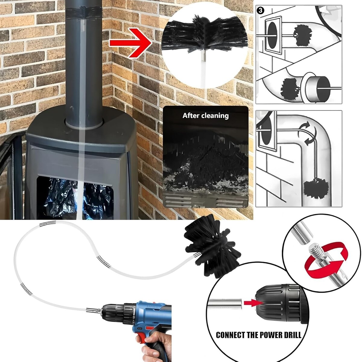 Versatile Application for Various Ducts: Engineered for a wide range of applications?including chimneys, dryer vents, wood stoves, hoods, and exhaust pipes?to effectively remove accumulated soot, lint, and creosote