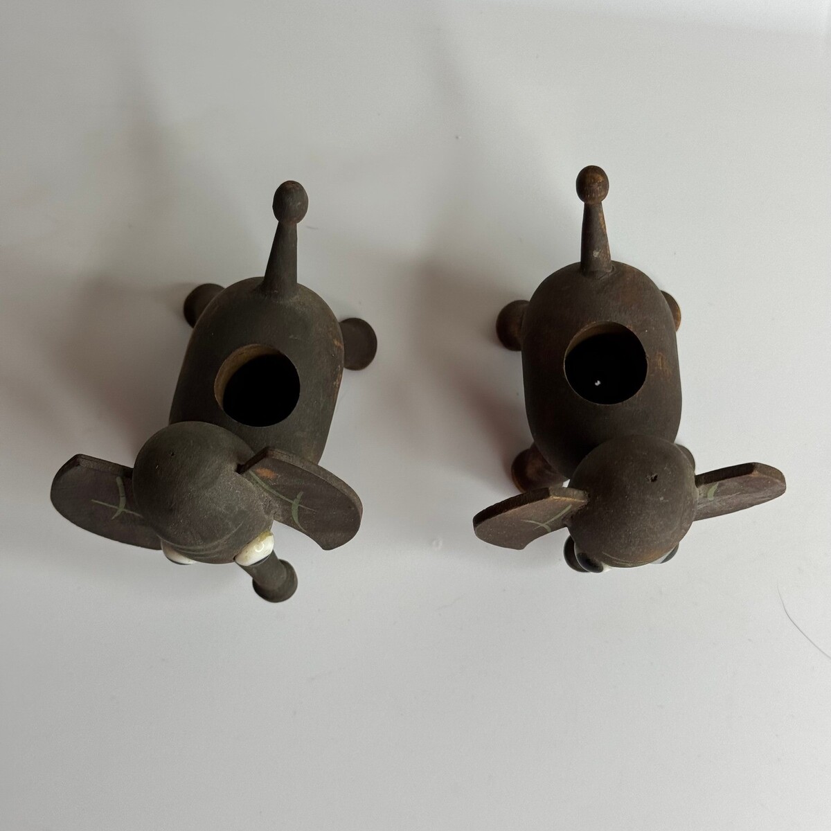 Vintage Wooden Elephant Figurines Set of 2 Rustic Farmhouse Shelf Decor