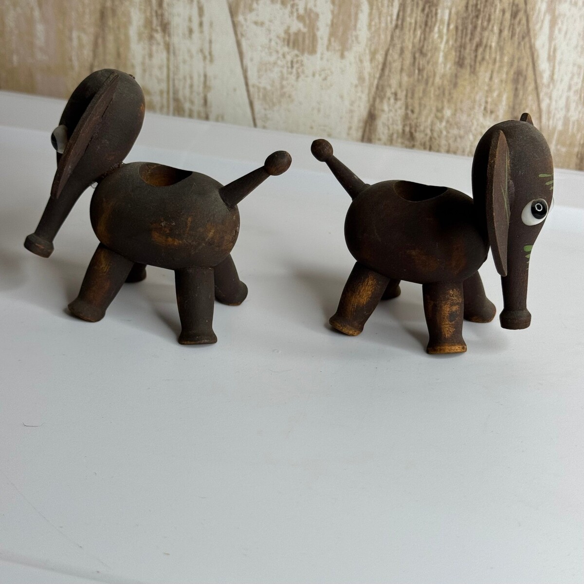 Keywords: wooden elephants, figurines, vintage, rustic, farmhouse, shelf decor, desk accessory, whimsical, handmade, collectible, animal figurines, tabletop decor