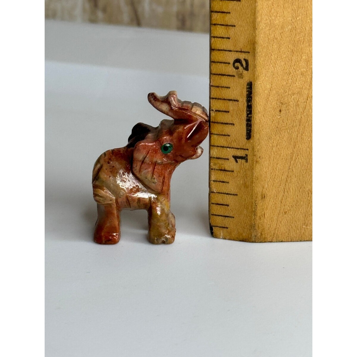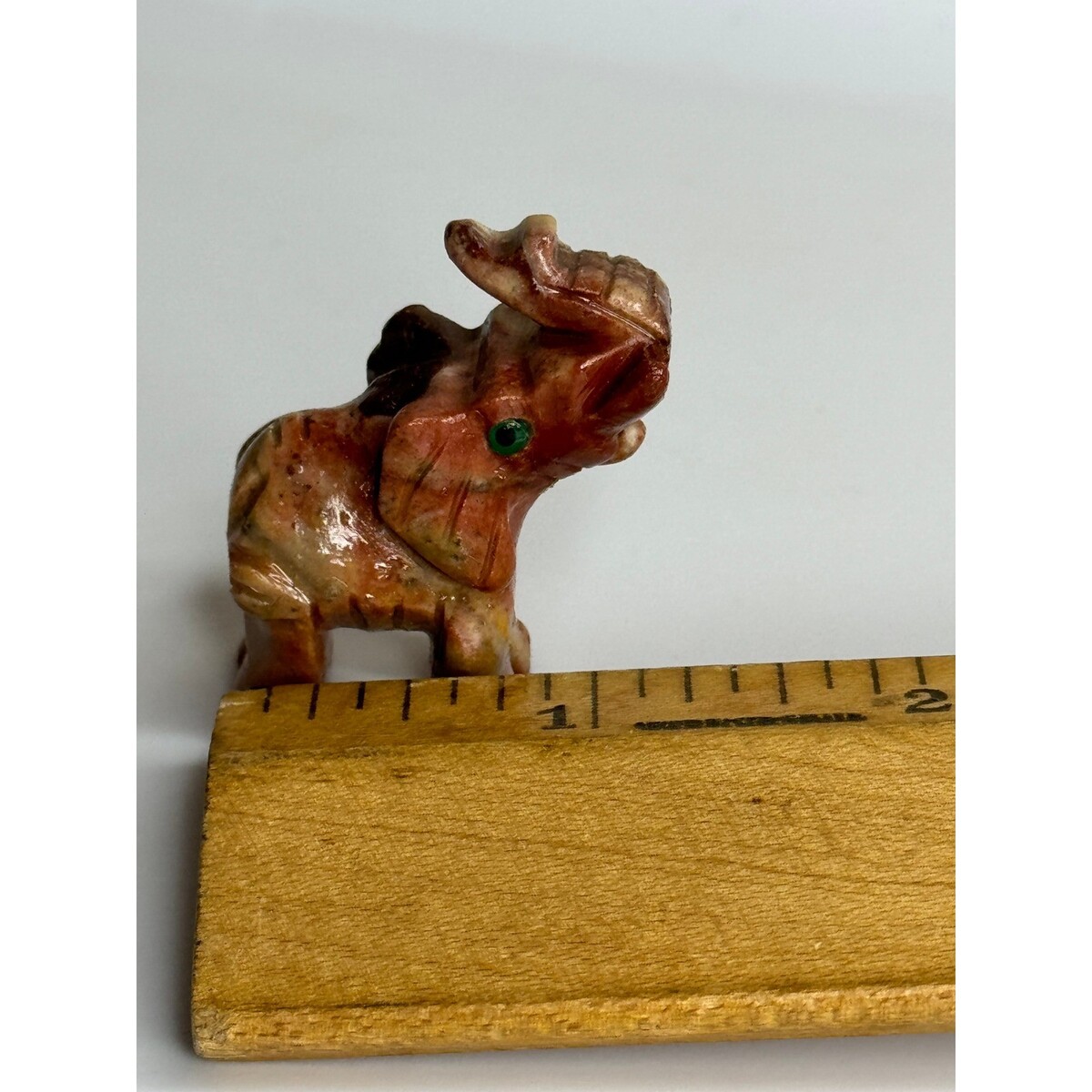 Hand Carved Stone Elephant Figurine Green Eyes Lucky Charm Animal Statue