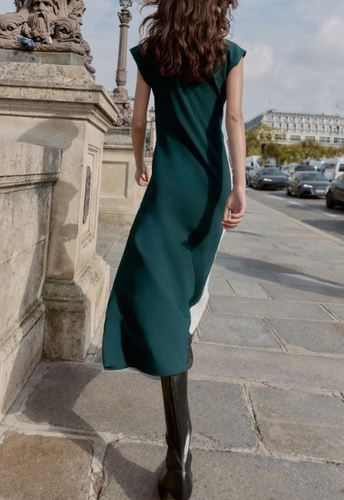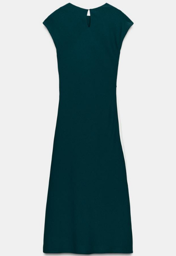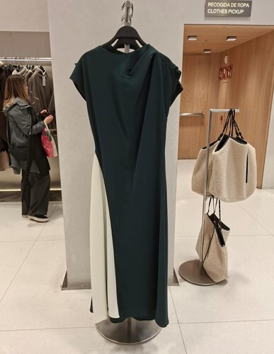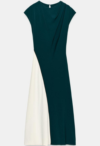 ZARA BNWT 2025. ECRU GREEN BLUE COMBINED MIDI DRESS ROUND NECK. 5029/215/080