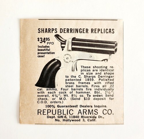 1963 Sharp's Derringer Pistol Replica Republic Arms Advertisement Hunting E91F