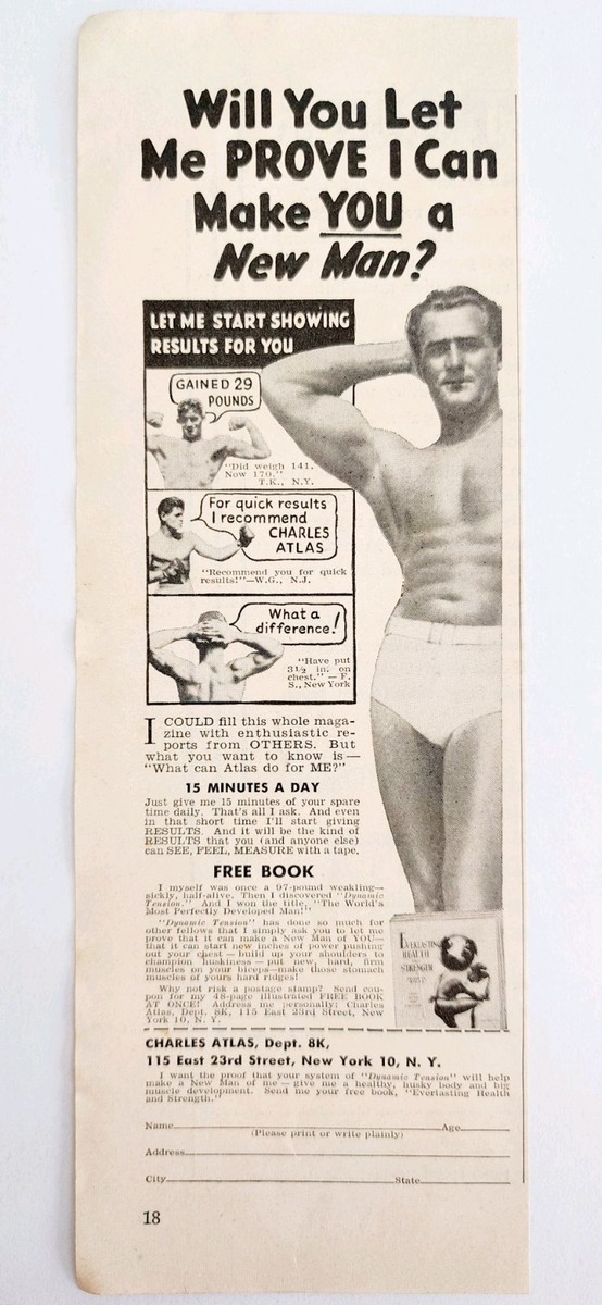 1948 Charles Atlas Health Fitness Muscles Advertisement Bodybuilding E2J3