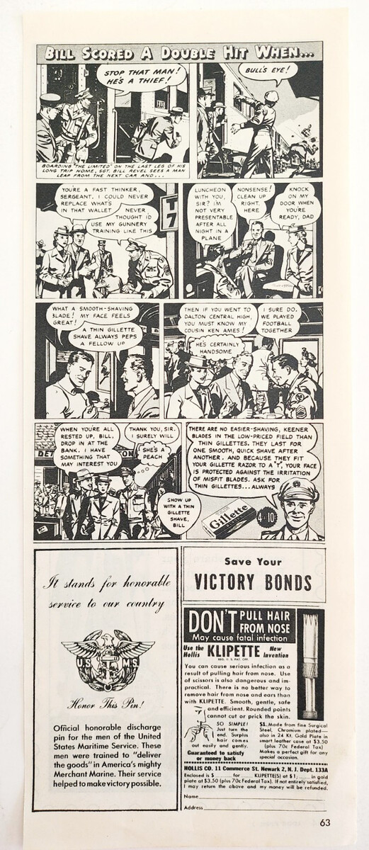 1946 Gillette Razors Police Comic Advertisement Vintage Shaving War Bonds DWII28