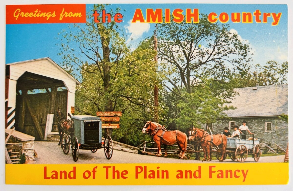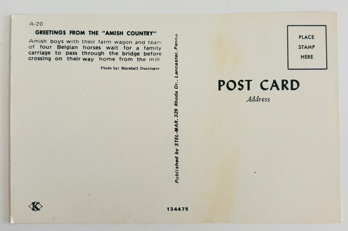 1970s Postcard Amish Belgian Horse Wagons Pennsylvania Dutch Bridge Vintage E2D