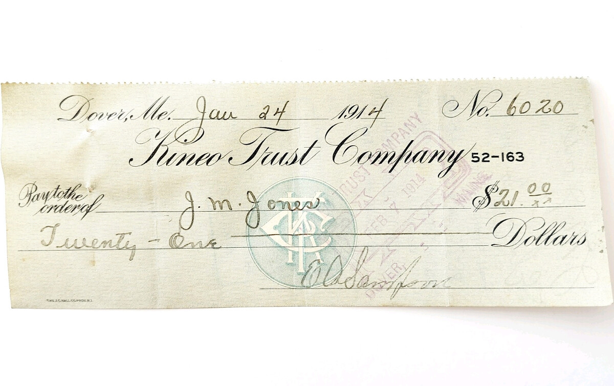 1914 Kineo Trust Company Bank Check E.A. Sampson Dover Maine Signed 6020 CHX7