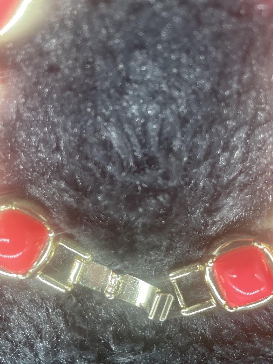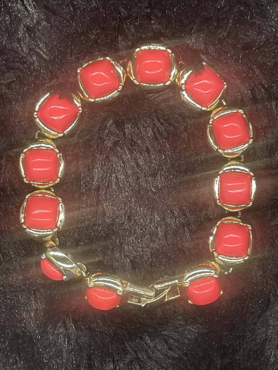 Modern woman fashion bracelet for every occasion. A 7 inch size bracelet with 12 orange acrylic stones each in it's own gold bezel.