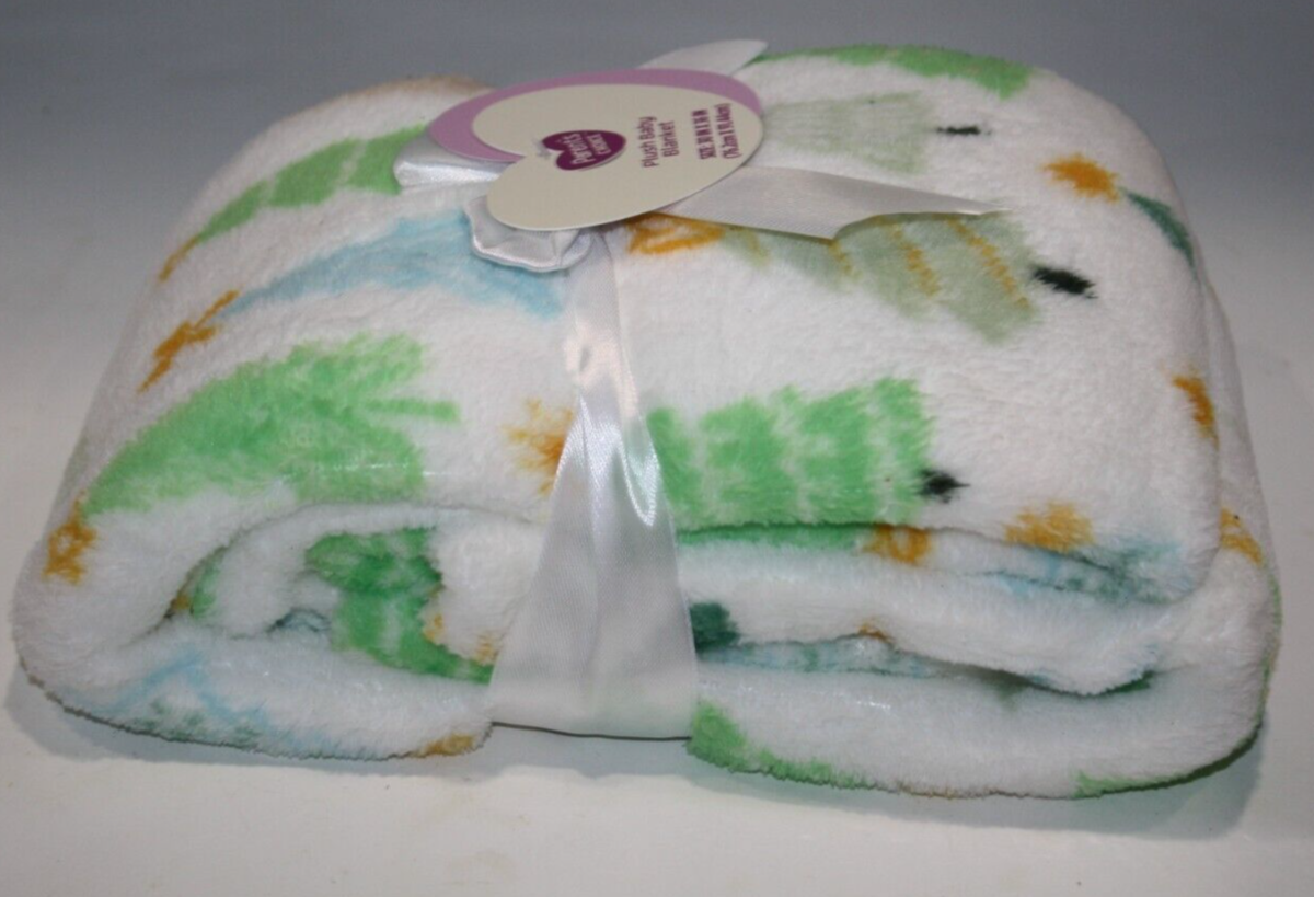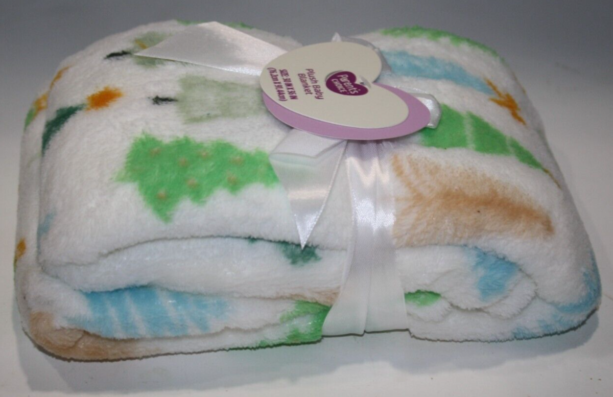 Parents Choice Xmas Tree Forest Plush Fleece Baby Blanket White Green Lovey New