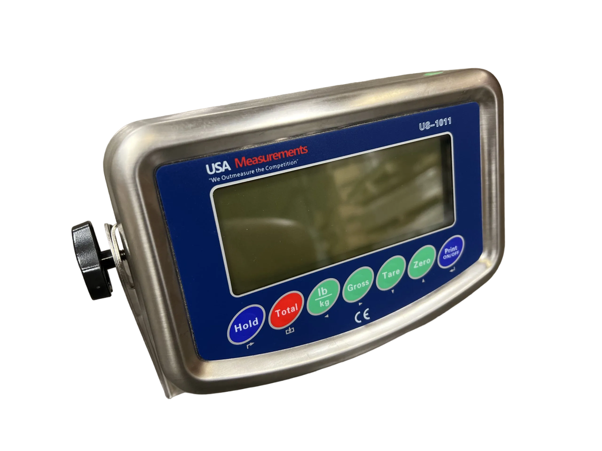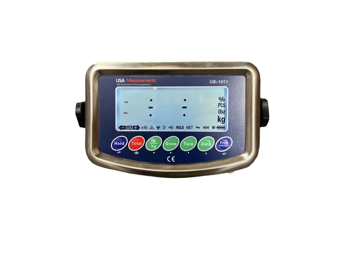 The US-1011SS indicator supports up to four 350-ohm load cells and features a built-in LCD display along with a rechargeable battery lasting up to 80 hours. This user-friendly indicator includes functions for accumulation, percentage weighing, check weighing, and part counting. The US-1011SS is simple to operate and can be calibrated by anyone. US-1011SS Indicator Features: LCD Backlight Display1.2? Digit SizeNet, Total, Hold, Zero, AccumulationUnits: Lb, Kg, % weightCounting FunctionRechargeable Battery110V Power AdapterAnimal Scale FunctionCheck weigh (Hi/Ok/Lo)RS-232 OutputPowers (4) 350 ohm Load CellsDimensions: 9.5"x4.9"x2.5"Operating Temp: -10C to 40C (14F to 104F)Non-NTEP (Not legal for trade) What it includes: (1) US-1011SS Digital LCD Indicator(1) Built in Rechargeable Battery(1) AC Power Adapter(1) 15? Home Run Cable(1) Stainless Steel Mounting Bracket(1) Owner?s Manual Common Applications: Industrial floor scales for warehouse weighingTruck and axle scales for vehicle weight monitoringBench scales for packaging and shipping operationsLivestock and animal scales for agricultural useCrane scales for heavy lifting and load managementPallet jack scales for mobile weighing in logisticsHopper and tank scales for batching and mixing processesCounting scales for inventory control and piece countingCheckweighing systems for quality control and production lines Resources: US-1011SS BrochureUS-1011SS Owners Manual WHY CHOOSE USA MEASUREMENTS? We offer a quality built product at a reasonable price. We specialize in scales and nothing else. We offer sales, service, and calibration in the largest cities throughout the United States. We stand behind our products with a 5 year warranty, 30 day return policy, and have a knowledgeable staff ready to answer any questions. We manufacture American made products, build custom scales, and offer only the best quality. Call us now: 800-711-2237 https://youtu.be/MkPcHfarTmI?si=LCYp8ln5LfdcN1NShttps://youtu.be/YjJSxdnAHA0?si=m5iv1y2J_vr1xzZOhttps://youtu.be/A2e-jHm9uzY?si=PB2yRR0YMbUpb5nYhttps://youtu.be/6yS5LpLHI_0?si=QHIxEJ_OwPIJeEqRhttps://youtu.be/lYFZxK1BfgA?si=ul8c0sH9NMtSqLo6https://youtu.be/mZjL7WqG0y8?si=saZuWVYTO1YkAdPkhttps://www.youtube.com/watch?v=Ig3BWryauaMhttps://www.youtube.com/watch?v=0il8ZbOQ2kk thttps://www.youtube.com/watch?v=_YDWLUgt3Xohttps://www.youtube.com/watch?v=ydJPLgkw9cohttps://youtu.be/SF8Jkk48vTE?si=FZCh8O0PnJT2Gbf3