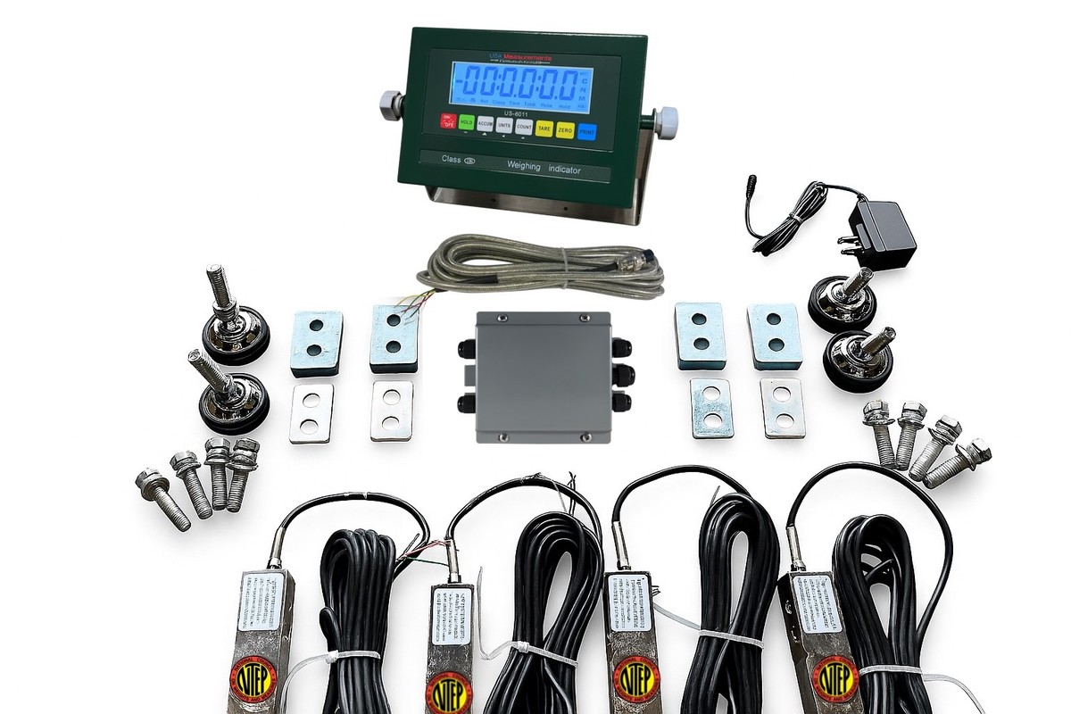 The US-HDSCN-40K Scale Kit is a complete, all-in-one weighing solution designed for users who need flexibility, reliability, and long-term performance in custom weighing applications. Whether you're building a platform scale, mounting under tanks or hoppers, creating a livestock weighing solution, or assembling a portable or mobile system, this kit gives you everything needed to get the job done with professional accuracy and efficiency.Load Cell Features: Hysteresis: 0.03% FSRepeatability: 0.02% FSCreep (30 Minutes): 0.02% FSTemperature Effect on Span: 0.0015% FS/CTemperature Effect on Zero: 0.0027% FS/CZero Balance: +/-1.00% FSInsulation Resistance: 5,000 MEGOHMSInput Impedance: 385 +/- 20 OhmsOutput Impedance: 350 +/- 350 OhmsSafe Overload: 150% FSDestructive Load: 300% FSExcitation Recommended: 10-15V AC/DCMaterial / Finish: Alloy SteelOperating Temperature: -10C ? + 40C (149F ? 104F)Standard Cable: 20 ft (6 meters)NTEP Approved (Load Cells)US-6011MS-LCD Features: Mild Steel Housing1? Digits in LCD displayWeighing Units LCD: Kg, Lb, Oz, grams, Lb:OzGross Weighing CapabilityMultiple Tare Options with Pre-Set TareZero FunctionHold Functions for Enhanced FlexibilityCounting FeatureAccumulation and Batch WeighingCheck Weighing with Over/Under AlarmPower-Saving ModeAuto Date Time AdjustmentAdjustable Gravity Based on LocationFully Adjustable Zero RangeError Warning AlertSplash-Proof Keyboard DisplayRS-232 Ports for Scoreboard and Printer ConnectivitySupports up to 50,000 Displayed GraduationsBracket Mounting Hardware Included110V Power AdapterEasy 5-Step CalibrationFull Duplex RS-232 Serial PortPowers up to Six 350? Load Cells2-Year Manufacturer WarrantyNTEP Approved (Digital Indicator)What it includes: (4) Shear Beal Load Cells 15,000 lb Each(4) Ball Swivel Adjustable Leveling Feet(4) Mounting Plates for Load Cells(4) Spacers for Load Cells(8) Bolts for Load Cell Mounting(8) Washers for Load Cells(8) Spring Lock Washers(1) US-6011 Digital LCD Indicator(1) Built in Rechargeable Battery(1) AC Power Adapter(1) 15? Home Run Cable(1) Stainless Steel Mounting Bracket(1) Owner?s ManualCommon Applications: Tank Weighing ? Monitor material levels and weight inside storage tanksLivestock Scales ? Build custom platforms to weigh cattle, pigs, goats, and moreHopper Scales ? Measure flow and discharge weights in industrial hoppersDrum Weighing ? Mount under drum platforms for accurate fill trackingPallet Scales ? Create heavy-duty pallet weighing systems for warehousesPortable Scales ? Assemble mobile platforms for field or job site useCrate Weighing ? Integrate into crate platforms for shipping and logisticsBaler Monitoring ? Track bale weight in recycling or agricultural balersCustom Projects ? Use in engineering prototypes, automation, or machineryResources: US-6011 BrochureUS-6011 Owners ManualWHY CHOOSE USA MEASUREMENTS? We offer a quality built product at a reasonable price. We specialize in scales and nothing else. We offer sales, service, and calibration in the largest cities throughout the United States. We stand behind our products with a 5 year warranty, 30 day return policy, and have a knowledgeable staff ready to answer any questions. We manufacture American made products, build custom scales, and offer only the best quality. Call us now: 833-639-1240https://youtu.be/Chmyy9P7cEk?si=KPa33wGTm8RYdxGNhttps://youtu.be/2COjH0-EHyY?si=2PVkUykwximTee-Whttps://youtu.be/1RNrW-PjrWc?si=tarCFl0aBRmmDkS6https://youtu.be/UA6ubpHIShE?si=uHOMWu8t16BLn3Ak