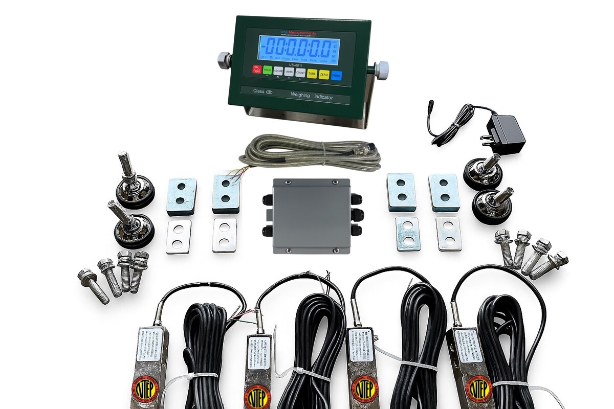 The US-HDSCN-80K Scale Kit is a complete, all-in-one weighing solution designed for users who need flexibility, reliability, and long-term performance in custom weighing applications. Whether you're building a platform scale, mounting under tanks or hoppers, creating a livestock weighing solution, or assembling a portable or mobile system, this kit gives you everything needed to get the job done with professional accuracy and efficiency.Load Cell Features: Hysteresis: 0.03% FSRepeatability: 0.02% FSCreep (30 Minutes): 0.02% FSTemperature Effect on Span: 0.0015% FS/CTemperature Effect on Zero: 0.0027% FS/CZero Balance: +/-1.00% FSInsulation Resistance: 5,000 MEGOHMSInput Impedance: 385 +/- 20 OhmsOutput Impedance: 350 +/- 350 OhmsSafe Overload: 150% FSDestructive Load: 300% FSExcitation Recommended: 10-15V AC/DCMaterial / Finish: Alloy SteelOperating Temperature: -10C ? + 40C (149F ? 104F)Standard Cable: 20 ft (6 meters)NTEP Approved (Load Cells)US-6011MS-LCD Features: Mild Steel Housing1? Digits in LCD displayWeighing Units LCD: Kg, Lb, Oz, grams, Lb:OzGross Weighing CapabilityMultiple Tare Options with Pre-Set TareZero FunctionHold Functions for Enhanced FlexibilityCounting FeatureAccumulation and Batch WeighingCheck Weighing with Over/Under AlarmPower-Saving ModeAuto Date Time AdjustmentAdjustable Gravity Based on LocationFully Adjustable Zero RangeError Warning AlertSplash-Proof Keyboard DisplayRS-232 Ports for Scoreboard and Printer ConnectivitySupports up to 50,000 Displayed GraduationsBracket Mounting Hardware Included110V Power AdapterEasy 5-Step CalibrationFull Duplex RS-232 Serial PortPowers up to Six 350? Load Cells2-Year Manufacturer WarrantyNTEP Approved (Digital Indicator)What it includes: (4) Shear Beal Load Cells 40,000 lb Each(4) Ball Swivel Adjustable Leveling Feet(4) Mounting Plates for Load Cells(4) Spacers for Load Cells(8) Bolts for Load Cell Mounting(8) Washers for Load Cells(8) Spring Lock Washers(1) US-6011 Digital LCD Indicator(1) Built in Rechargeable Battery(1) AC Power Adapter(1) 15? Home Run Cable(1) Stainless Steel Mounting Bracket(1) Owner?s ManualCommon Applications: Tank Weighing ? Monitor material levels and weight inside storage tanksLivestock Scales ? Build custom platforms to weigh cattle, pigs, goats, and moreHopper Scales ? Measure flow and discharge weights in industrial hoppersDrum Weighing ? Mount under drum platforms for accurate fill trackingPallet Scales ? Create heavy-duty pallet weighing systems for warehousesPortable Scales ? Assemble mobile platforms for field or job site useCrate Weighing ? Integrate into crate platforms for shipping and logisticsBaler Monitoring ? Track bale weight in recycling or agricultural balersCustom Projects ? Use in engineering prototypes, automation, or machineryResources: US-6011 BrochureUS-6011 Owners ManualWHY CHOOSE USA MEASUREMENTS? We offer a quality built product at a reasonable price. We specialize in scales and nothing else. We offer sales, service, and calibration in the largest cities throughout the United States. We stand behind our products with a 5 year warranty, 30 day return policy, and have a knowledgeable staff ready to answer any questions. We manufacture American made products, build custom scales, and offer only the best quality. Call us now: 833-639-1240https://youtu.be/Chmyy9P7cEk?si=KPa33wGTm8RYdxGNhttps://youtu.be/2COjH0-EHyY?si=2PVkUykwximTee-Whttps://youtu.be/1RNrW-PjrWc?si=tarCFl0aBRmmDkS6https://youtu.be/UA6ubpHIShE?si=uHOMWu8t16BLn3Ak