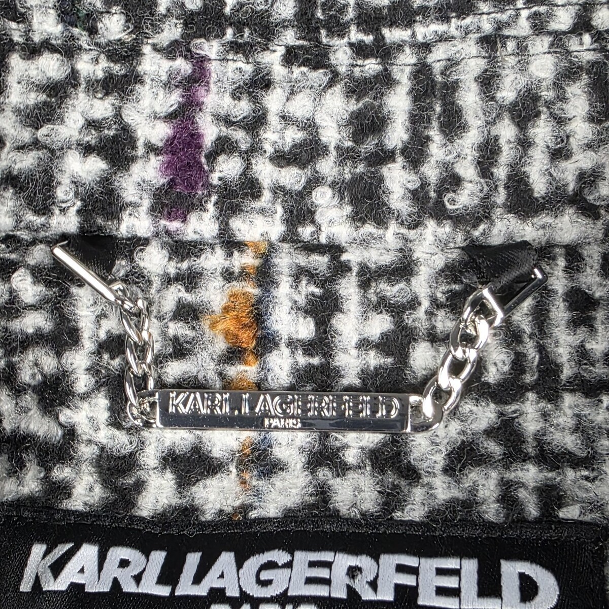 This Karl Lagerfeld Paris coat is a stylish and versatile option for women in size XS. Made from a wool blend with a plaid pattern, this long coat features raglan sleeves and a full zip closure with snap buttons. Perfect for casual or business occasions, it is lined with polyester and insulated for added warmth. The multicolor design, accented with the designer's logo, gives it a classic Parisian look that is both timeless and chic. Ideal for the winter, fall, and spring seasons, this coat is sure to make a statement in any wardrobe.