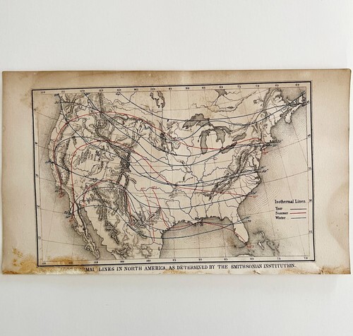 Isothermal Map United States Victorian 1856 Art Plate Print Antique DWT15