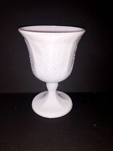 Mid Century Vintage Indiana Harvest Grape White Milk Glass Goblet Water 5.25”