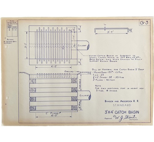 1951 Railroad Bangor Aroostook 3 x 4 Catch Basin Culvert Blueprint G3 DWDD14