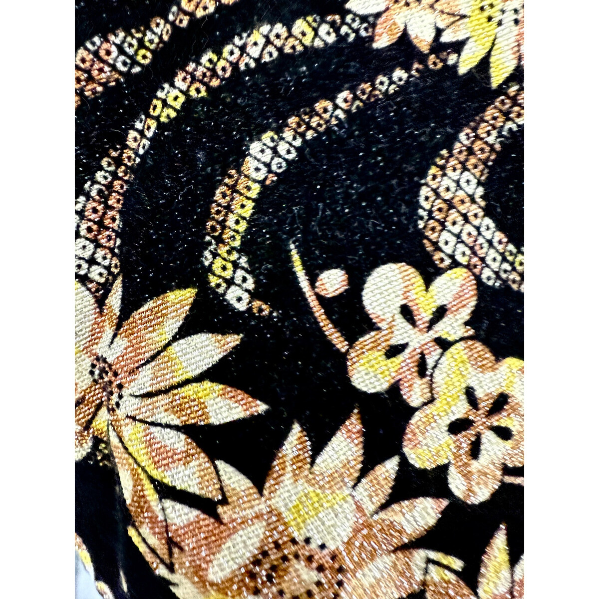 Vtg 70s Black Velvet Flocked Glitter Floral and similar items