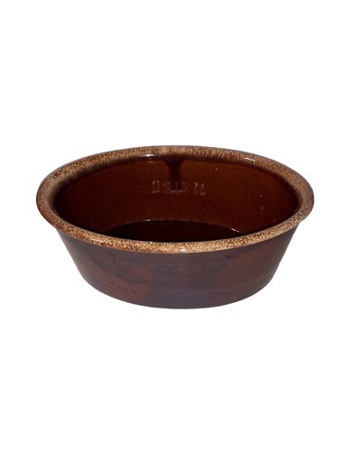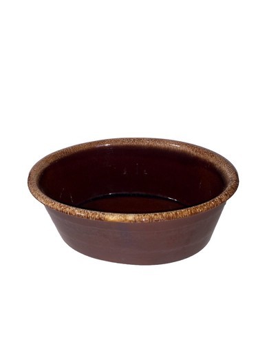 This vintage Hull Pottery brown glaze drip oval casserole/serving dish is a charming piece perfect for serving and storing meals. Made of stoneware with a glossy finish, this 10" x 7" bowl features a classic American-themed design with all-over brown color and a vintage appeal. Oven-proof and art pottery production style, this original casserole is a unique addition to any kitchen or dining table.