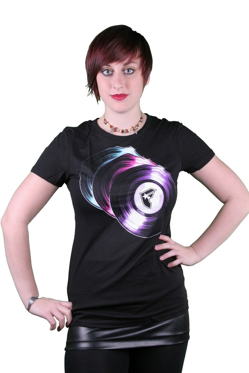 Juniors Disco Crew-neck T-Shirt from Famous Stars Straps Short Sleeve Crew Neck Size- Small 100% Cotton Color Schemes- Purple Or Black (see availability)