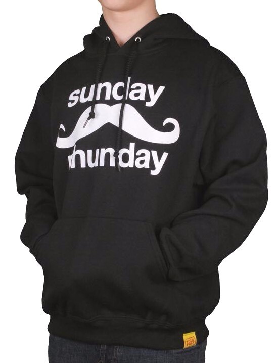 Team Phun Hombre Sunday Diversión Día Bigote Blanco y Negro Jersey Sudadera Nwt