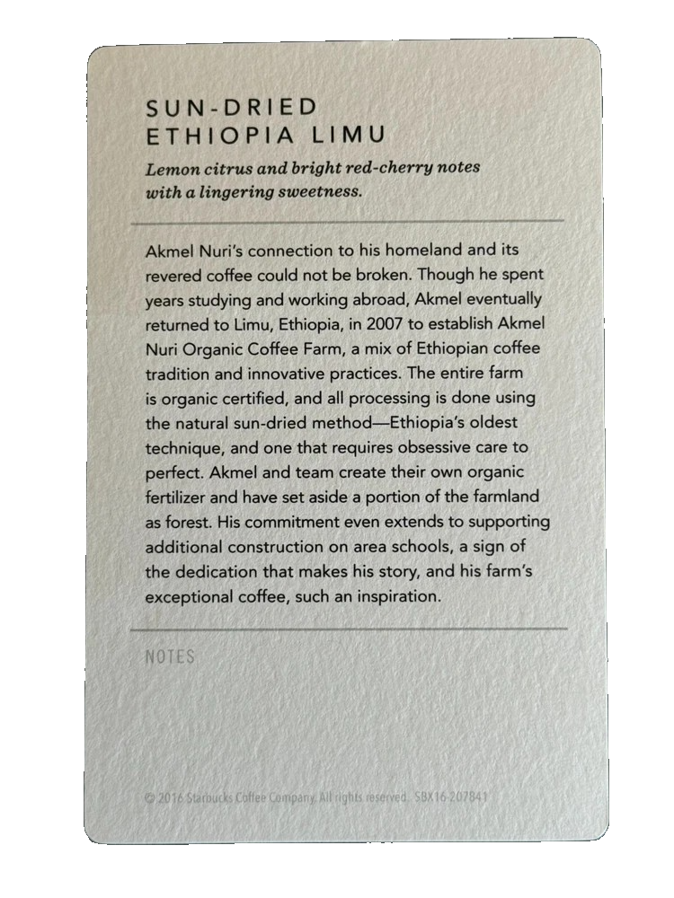 6 Bags of 8.8oz Starbucks Reserve® Sun-dried Ethiopia Limu - RARE '17