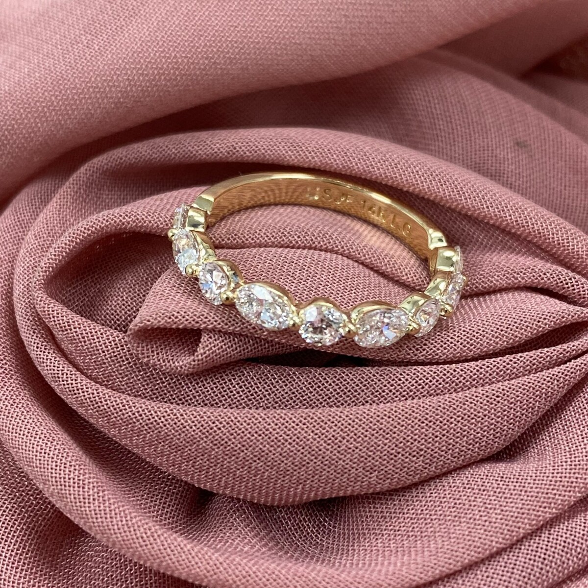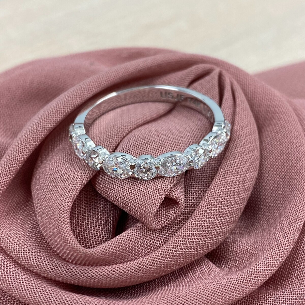 1.20Ct Round and Oval Cut Alternating Lab Grown Diamond Wedding Band 14k Gold