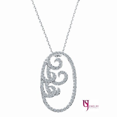 0.70 Karat Ovaler Rahmen Diamant Anhanger mit Kette 16 " 14k Weiss Gold