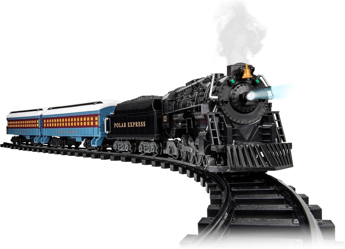 PRODUCT: Showcase the magic of belief this Christmas with The Polar Express Bluetooth Ready-to-Play Train Set with Water-Vapor Smoke Effects. All aboard The Polar Express Ready-to-Play train set; This set comes with an exclusive track system allowing you to create a circle, rectangle or oval track; Great for kids, hobbyists and holiday decorating.