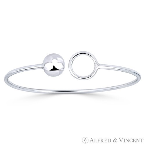 10mm Ball Bead & 13mm Circle Ring Open-Cuff Bangle .925 Sterling Silver Bracelet