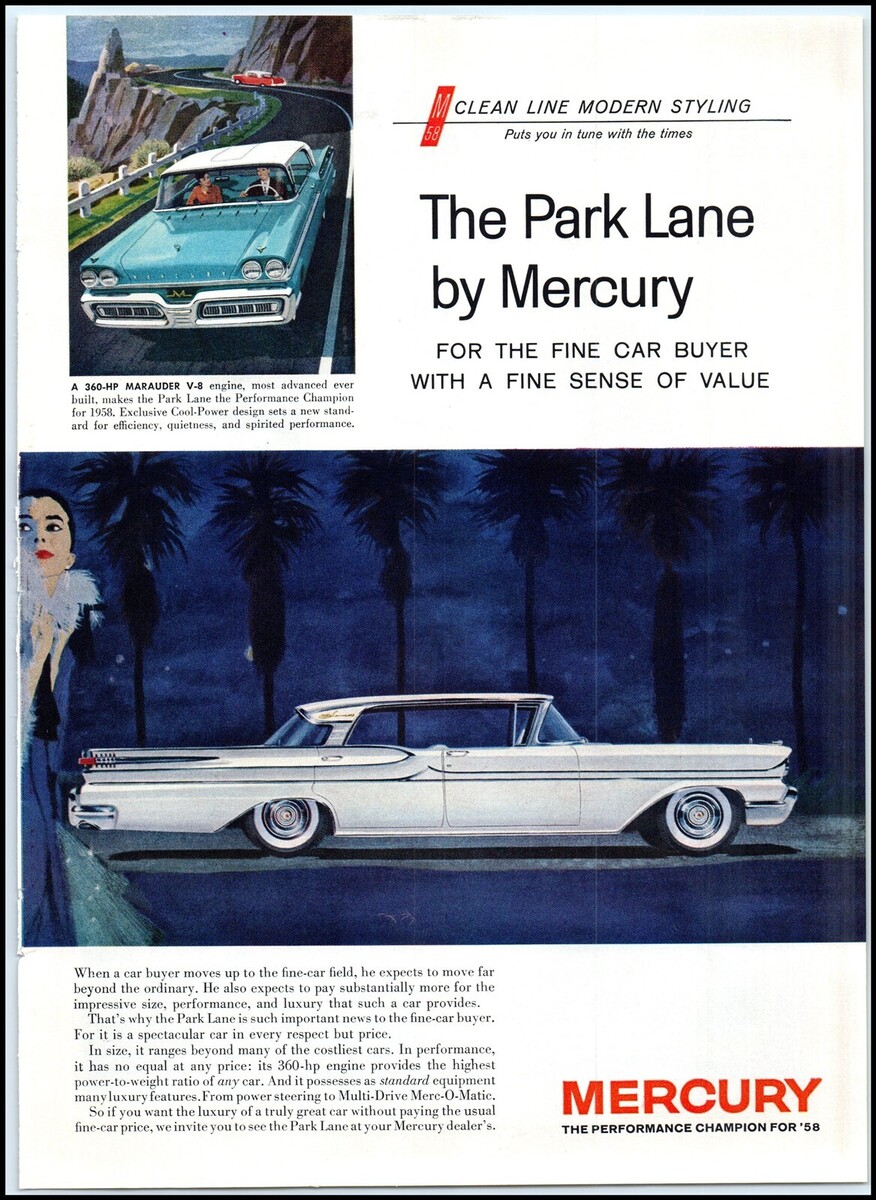 1958 Mercury Park Lane Automobile PRINT AD and similar items